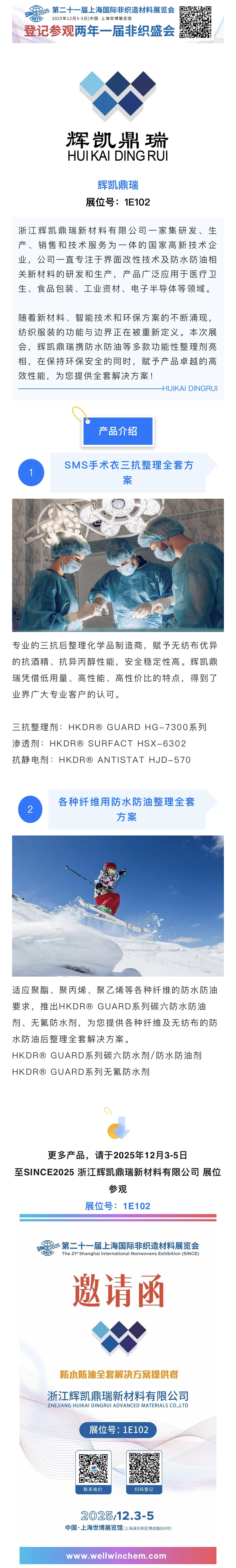 【SINCE展會(huì)邀請】輝凱鼎瑞:專注界面改性,提供防水防油方案